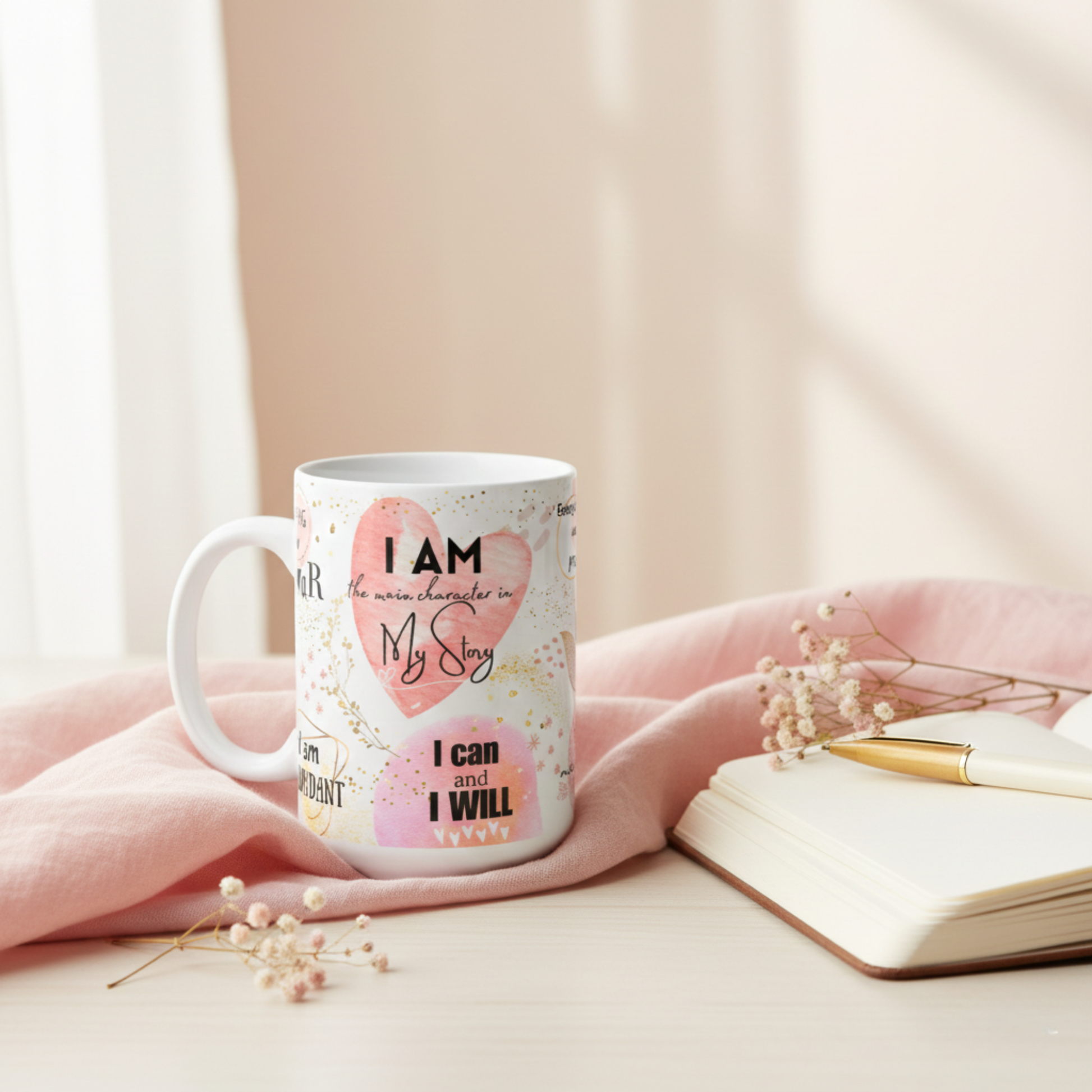 I Am Affirmation Ceramic Mug – Pink Peach Theme | Inspirational Daily Mug